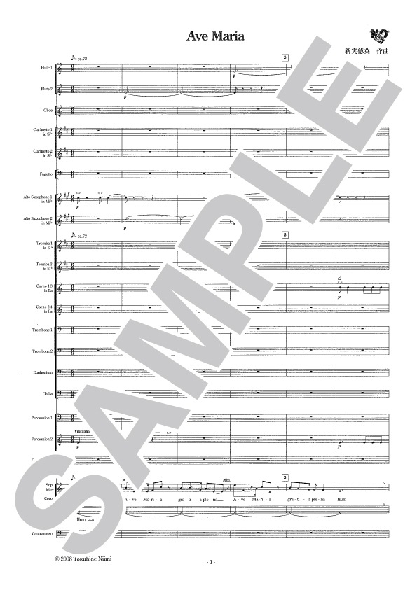 今回の作品はその時の体験がもととなっている。テキストとして「アヴェマリア」を選んだのはイントネーション言語である日本語よりもアクセント言語のラテン語の方が自分の音楽プランに引き寄せやすいし、かつ母音が明快である。