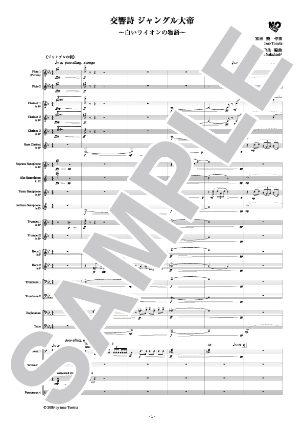 交響詩「ジャングル大帝」は、1965年~66年にかけて放映されたテレビアニメ「ジャングル大帝」(第一話)が元になっている。オリジナルはオーケストラ作品で、当時の文部省指導要領を踏まえ、子どもたちがオーケストラの楽器について学ぶための材料として作曲された。1966年に発表され、2009年、再び作曲者自身の手によって書き直されている。