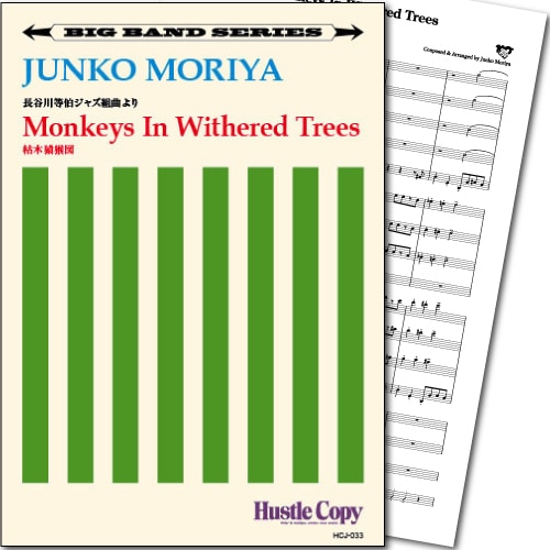 3匹の親子の猿が、木々を次々に飛び移って楽しそうに遊んでいる風景を描いた絵。両親・妻・息子を早くに亡くし、家庭的にはあまり恵まれているとは言えなかった等伯は、この絵に理想の家族像を託したと言われています。重要文化財ながら、ユーモラスでちょっとマンガチックなところもあり、可愛らしく親しみやすい絵です。今にも猿たちが画面から飛び出してきそうな躍動感を、ミディアムアップの軽快なスイングで表現しました。