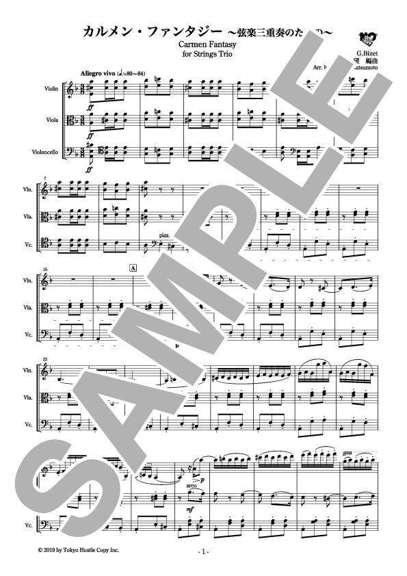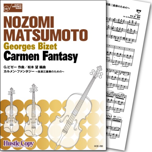 このオペラを基にした編曲は数多く存在しますが、今回は、その中でも特に有名なサラサーテとワックスマンの編曲(それぞれ編成はヴァイオリンとオーケストラ)を参考に、その中に出て来る「ハバネラ」「セギディーリャ」等の一部を取り入れ編曲したほか、「闘牛士の歌」「第3幕への間奏曲」「前奏曲」といったおなじみのメロディー等も取り込んだ、盛りだくさんのアレンジとなっています。