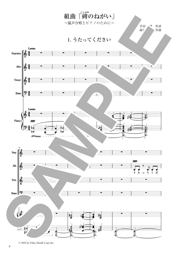 ・内容:合唱曲(混声四部合唱&ピアノ)